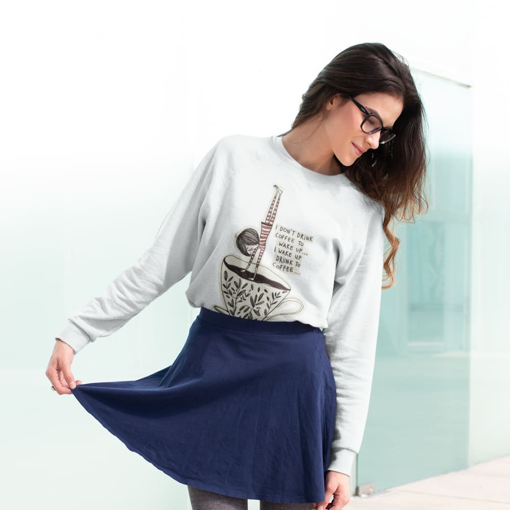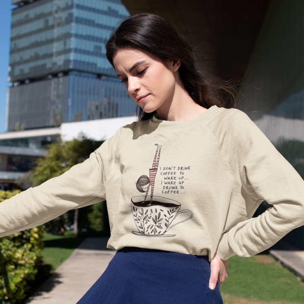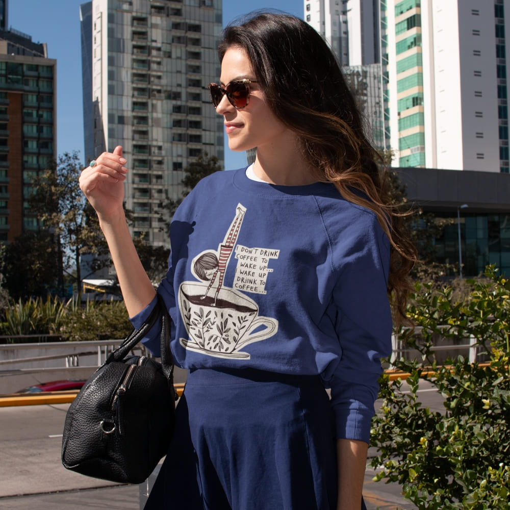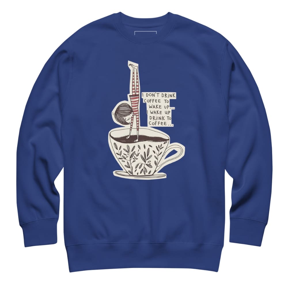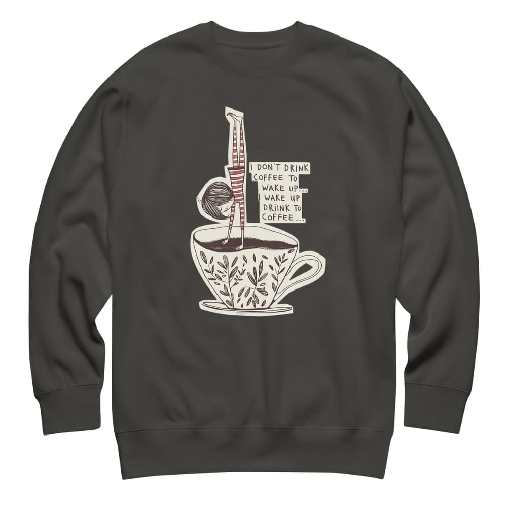 This ultra-soft premium fleece sweatshirt is made for cozy mornings, sleepy vibes, and caffeine cravings. Featuring a charming handstand girl diving into a giant coffee cup and the quote: