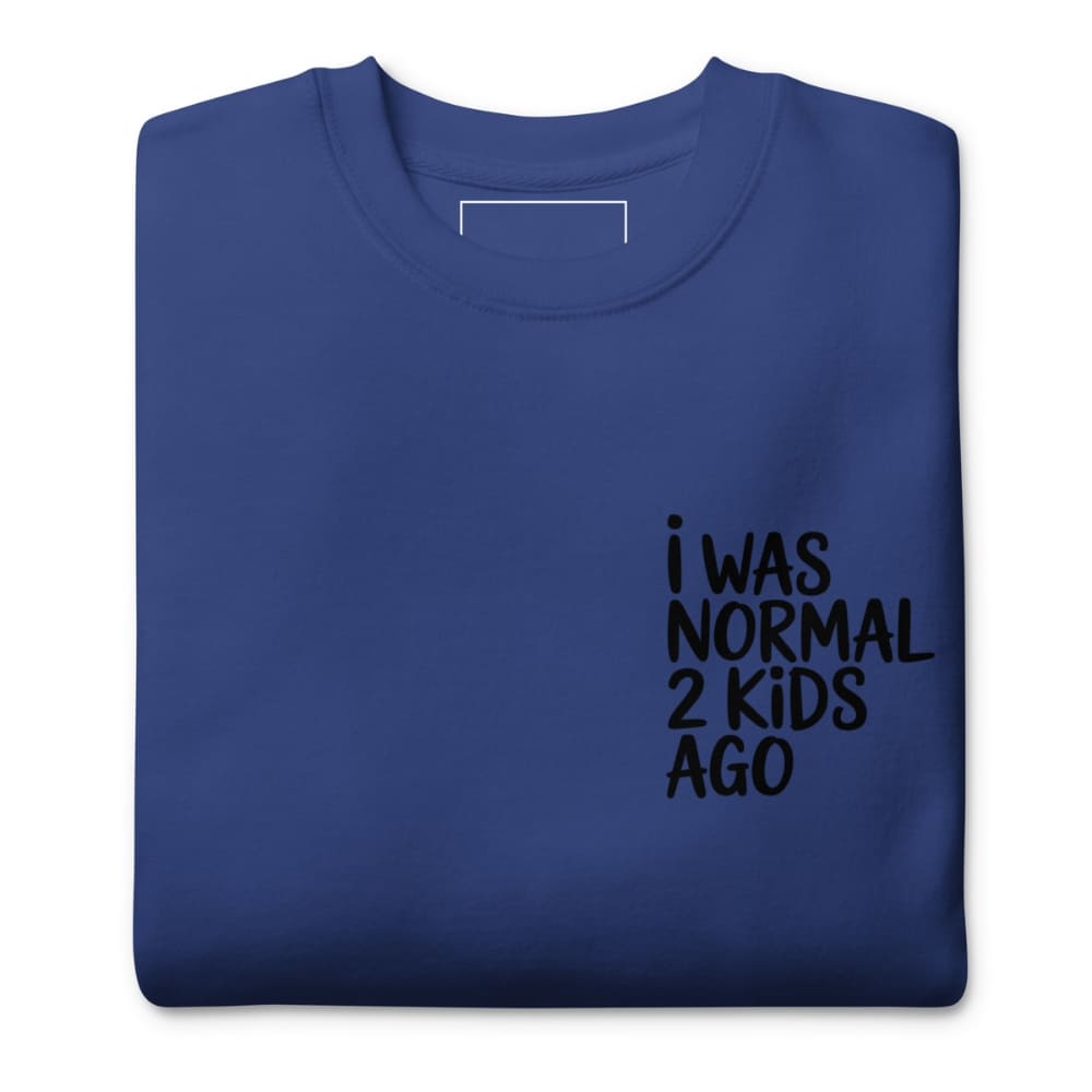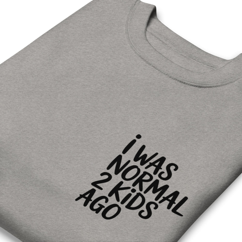 Our “I Was Normal 2 Kids Ago” fleece pullover delivers the comfort you need and the humor you deserve. Whether you're juggling juice boxes, surviving tantrums, or running on coffee and chaos, this sweatshirt keeps it real — just like you.