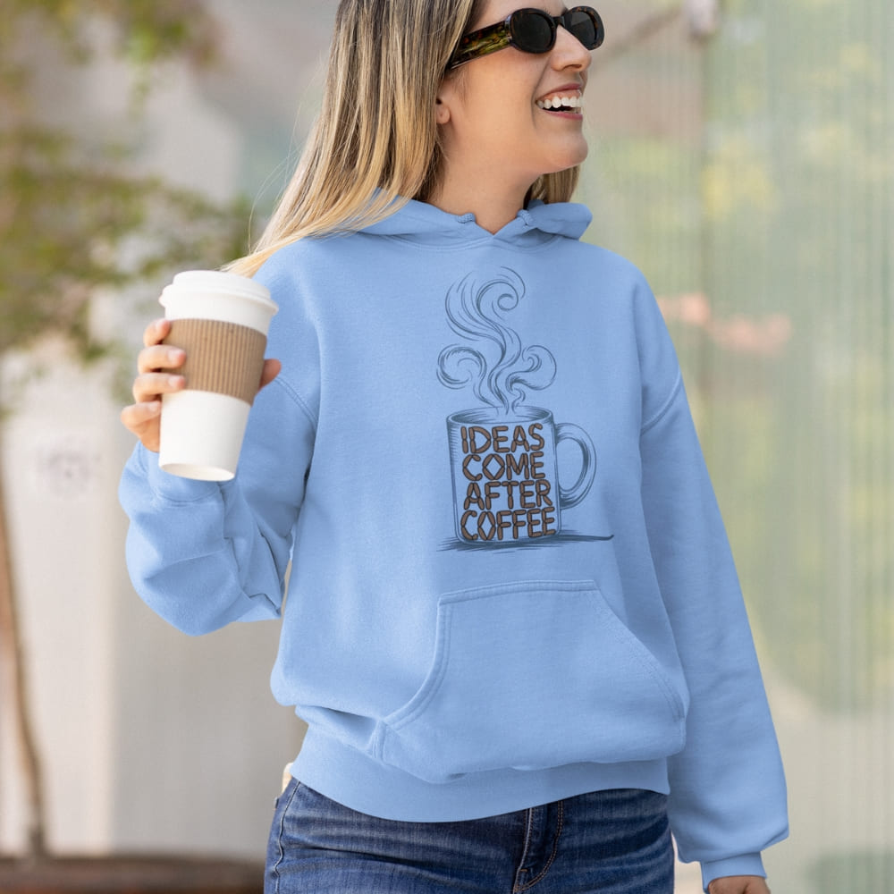 Whether you're a morning thinker, night owl, or caffeine-fueled creative, the Ideas Come After Coffee Heavy Blend Hoodie delivers your daily dose of warmth and motivation.