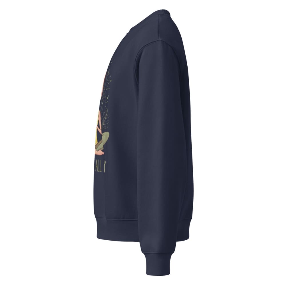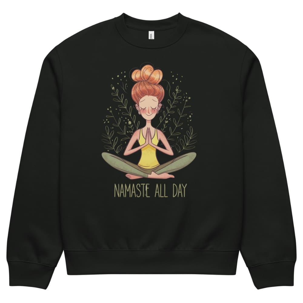 Featuring a warm and whimsical illustration of a woman meditating in lotus pose, surrounded by soft botanicals and the phrase Namaste All Day, this sweatshirt invites stillness into your daily life.