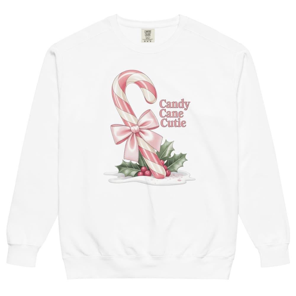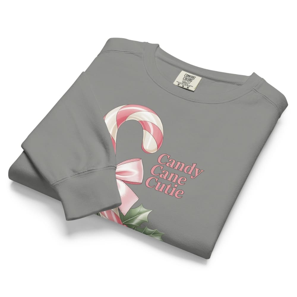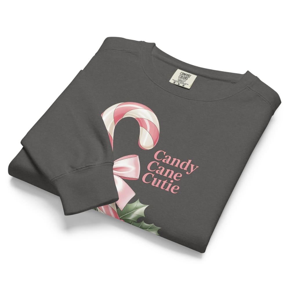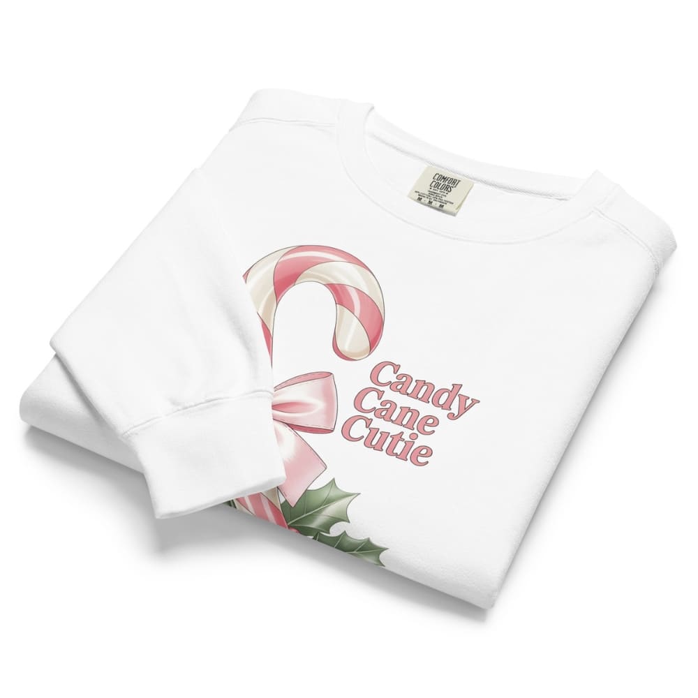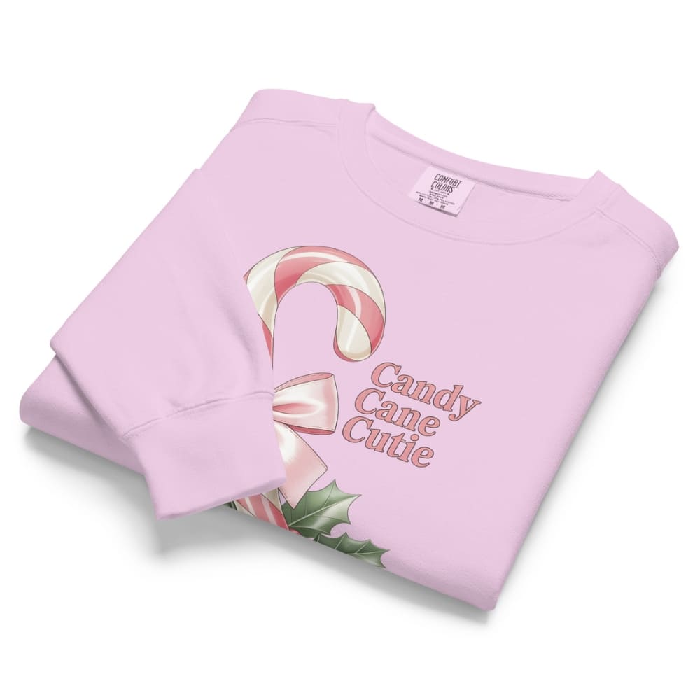 Bring the sweetest holiday vibes to your winter wardrobe with the Candy Cane Cutie Garment-Dyed Sweatshirt. Featuring a soft pink candy cane wrapped with a satin bow, surrounded by holly leaves and berries, this design is playful, charming, and perfect for anyone who loves soft-aesthetic holiday style.