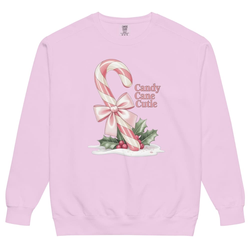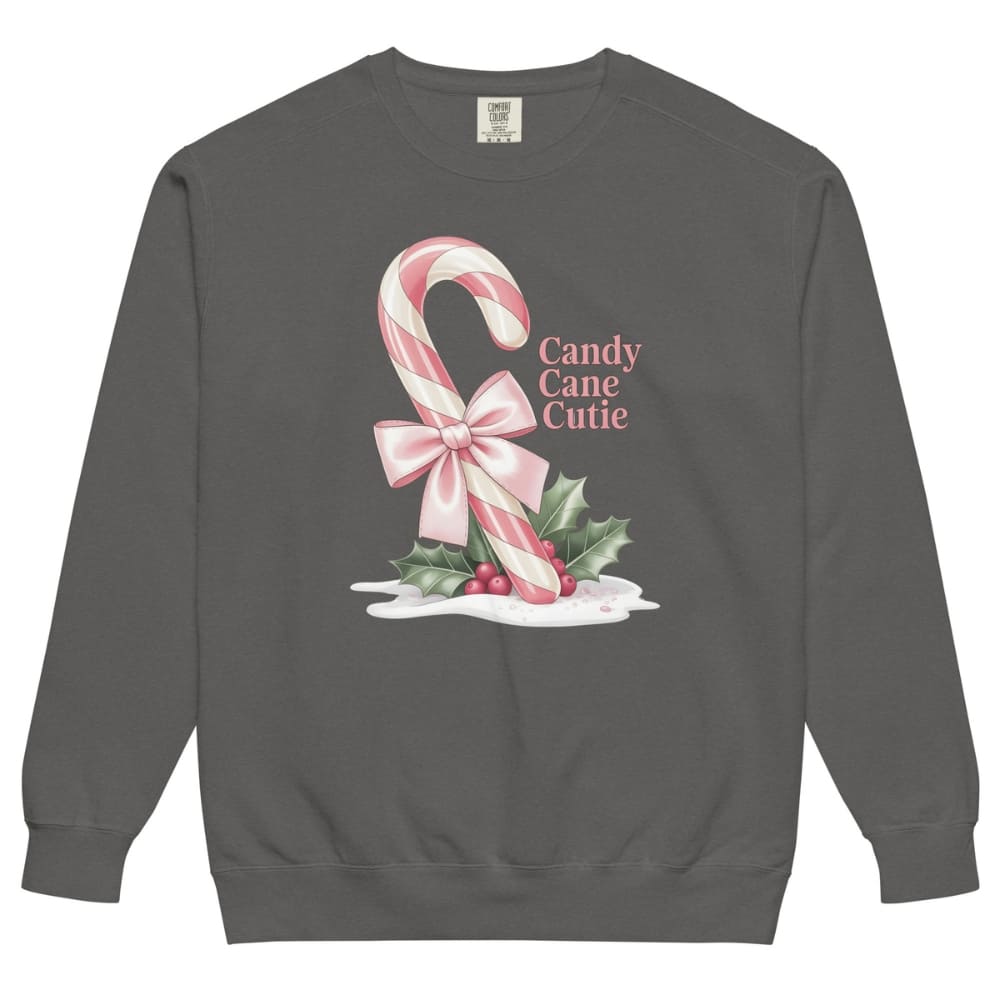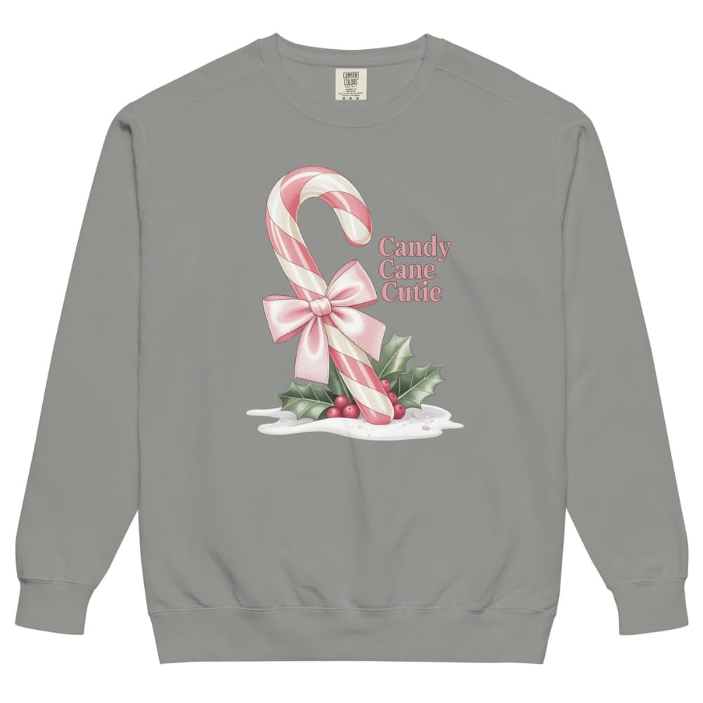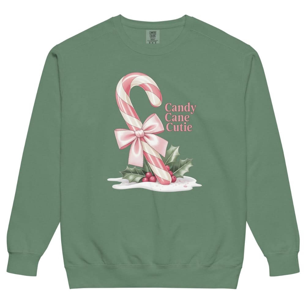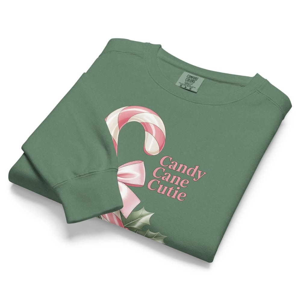 Bring the sweetest holiday vibes to your winter wardrobe with the Candy Cane Cutie Garment-Dyed Sweatshirt. Featuring a soft pink candy cane wrapped with a satin bow, surrounded by holly leaves and berries, this design is playful, charming, and perfect for anyone who loves soft-aesthetic holiday style.