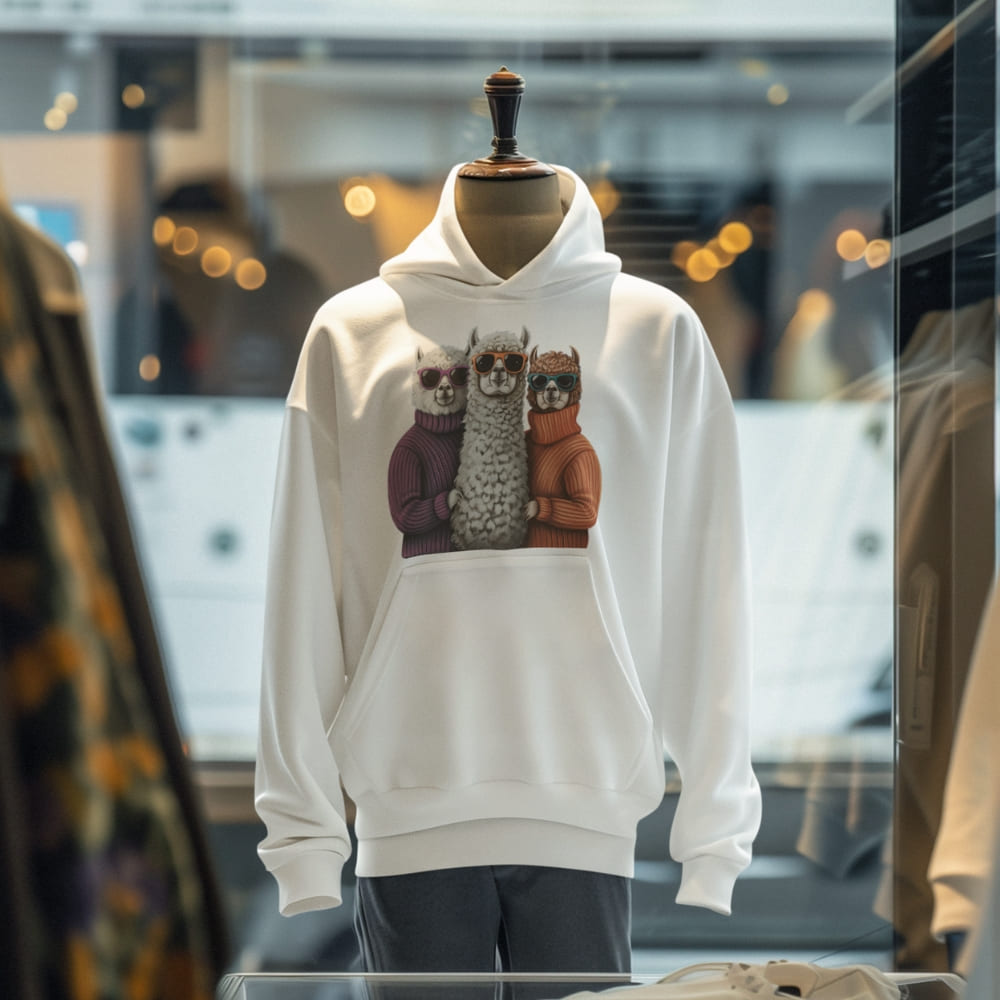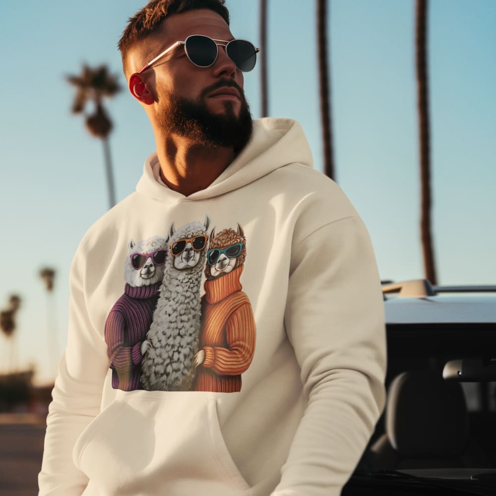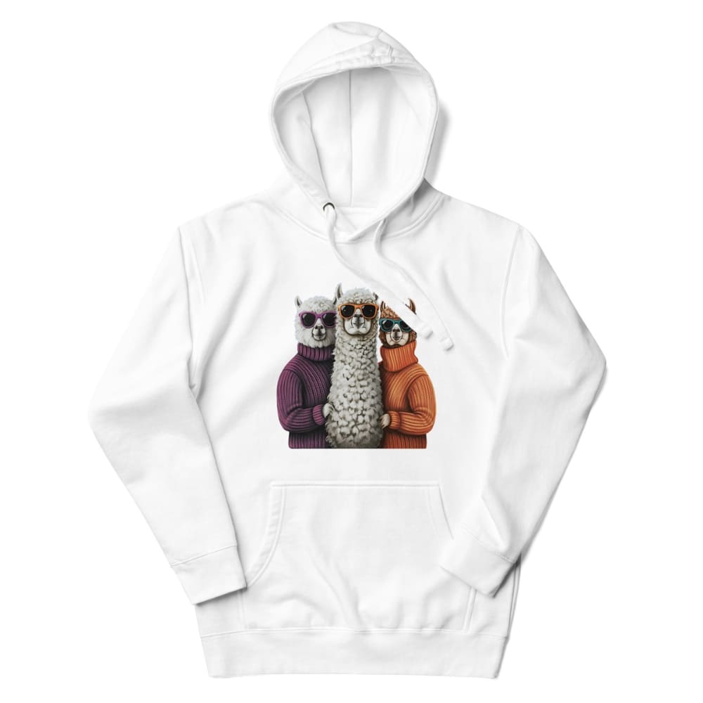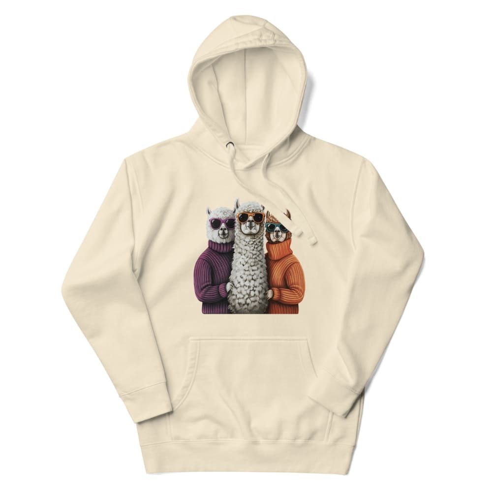 If you're a fan of clever animal art and cozy layers, this Cool Llamas in Sweaters Hoodie is made just for you. Featuring a hilarious graphic of llamas rocking bold sweaters and retro sunglasses, this design blends chill vibes with warm comfort.