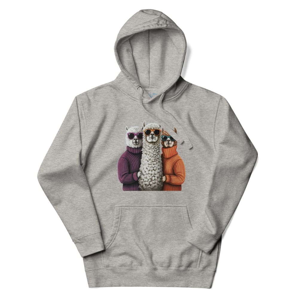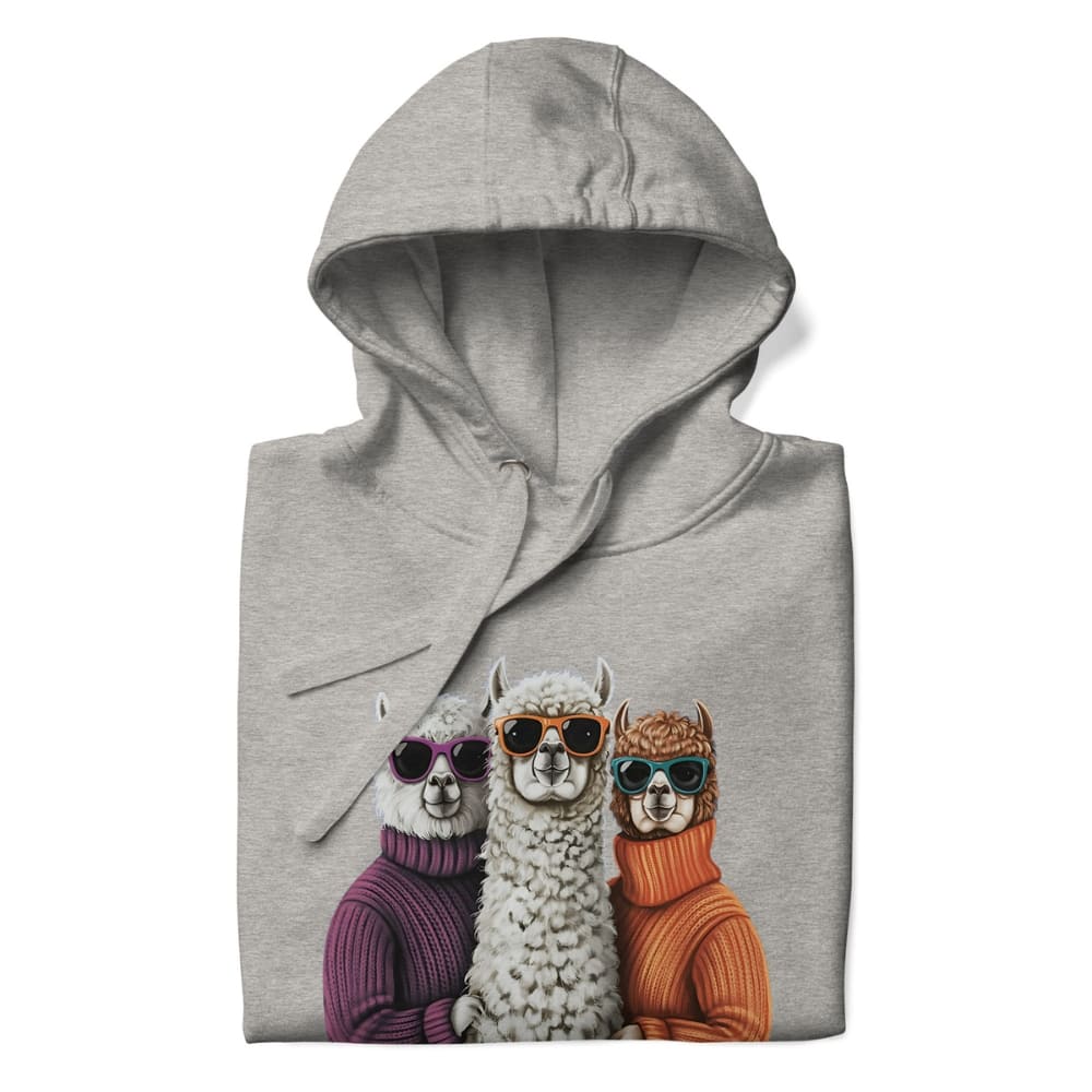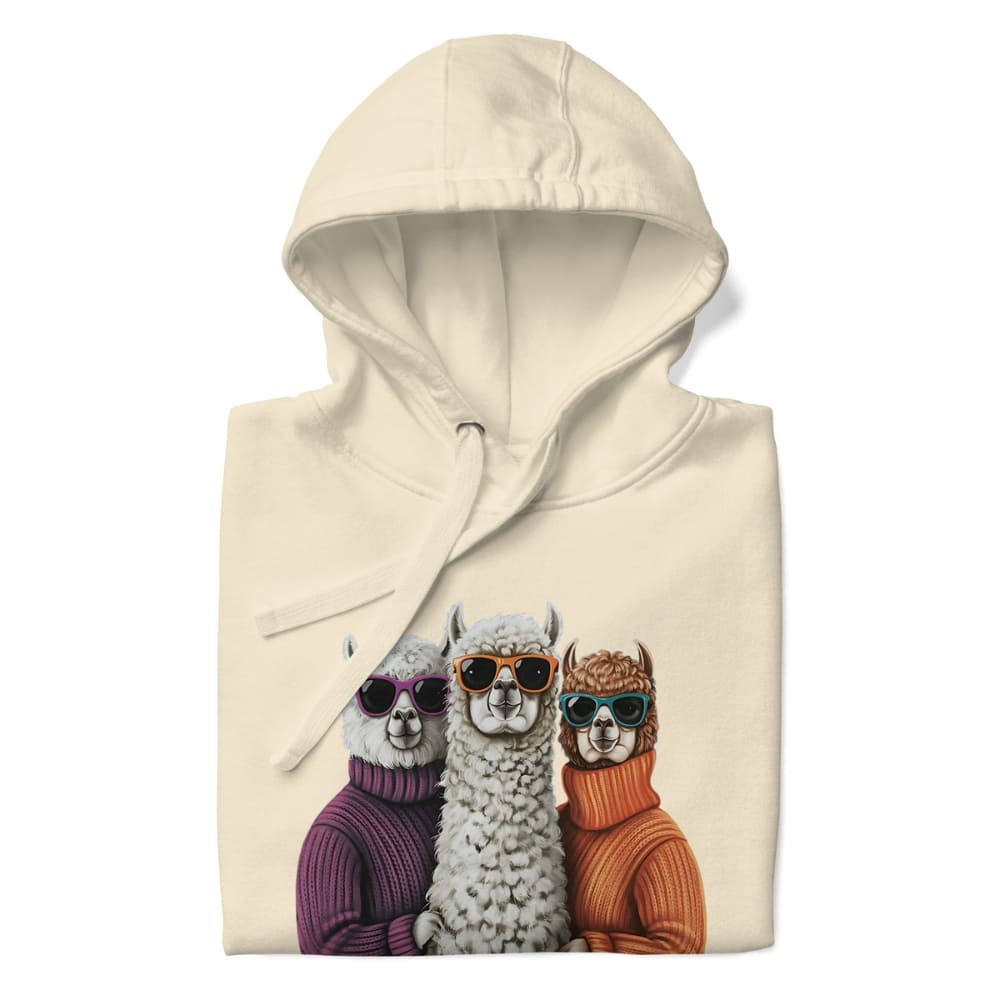 Three llamas. Three sweaters. One ridiculously cool hoodie.